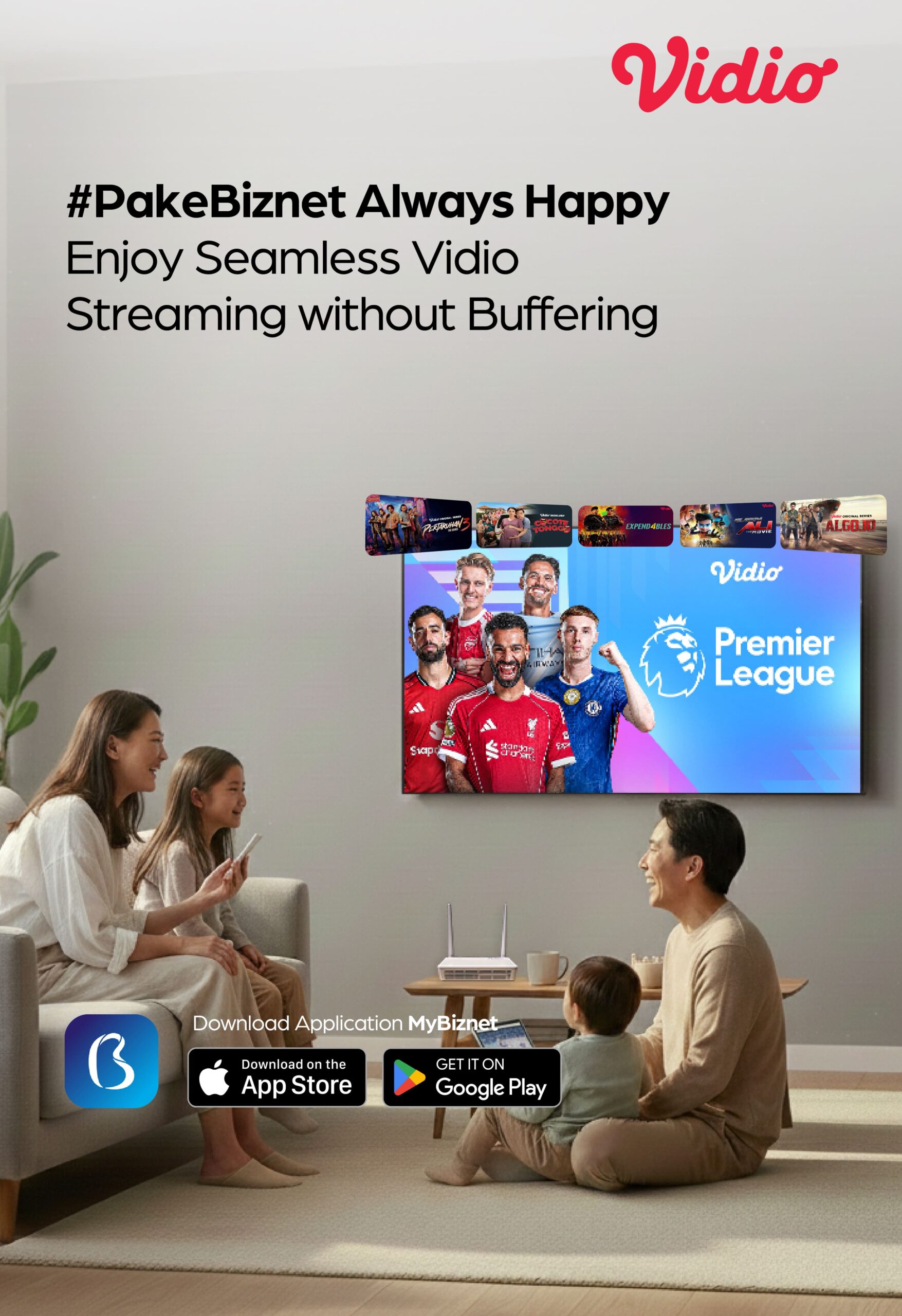 Special for Biznet IPTV customers, starting in November 2025, you will receive a free Vidio Lite service package. Offering a variety of entertaining shows from Vidio, ranging from movies and series to favorite sports programs. For terms and conditions, please check here.