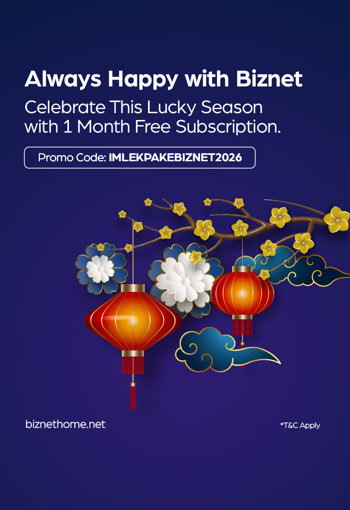 Always happy with Biznet and save more with Chinese New Year Promo of buy 2 get 1 free Biznet Home subscription. Enjoy seamless digital activities at home with fast Internet from Biznet Home. #PakeBiznet now and grab this special promo available only from 10-28 February 2026.