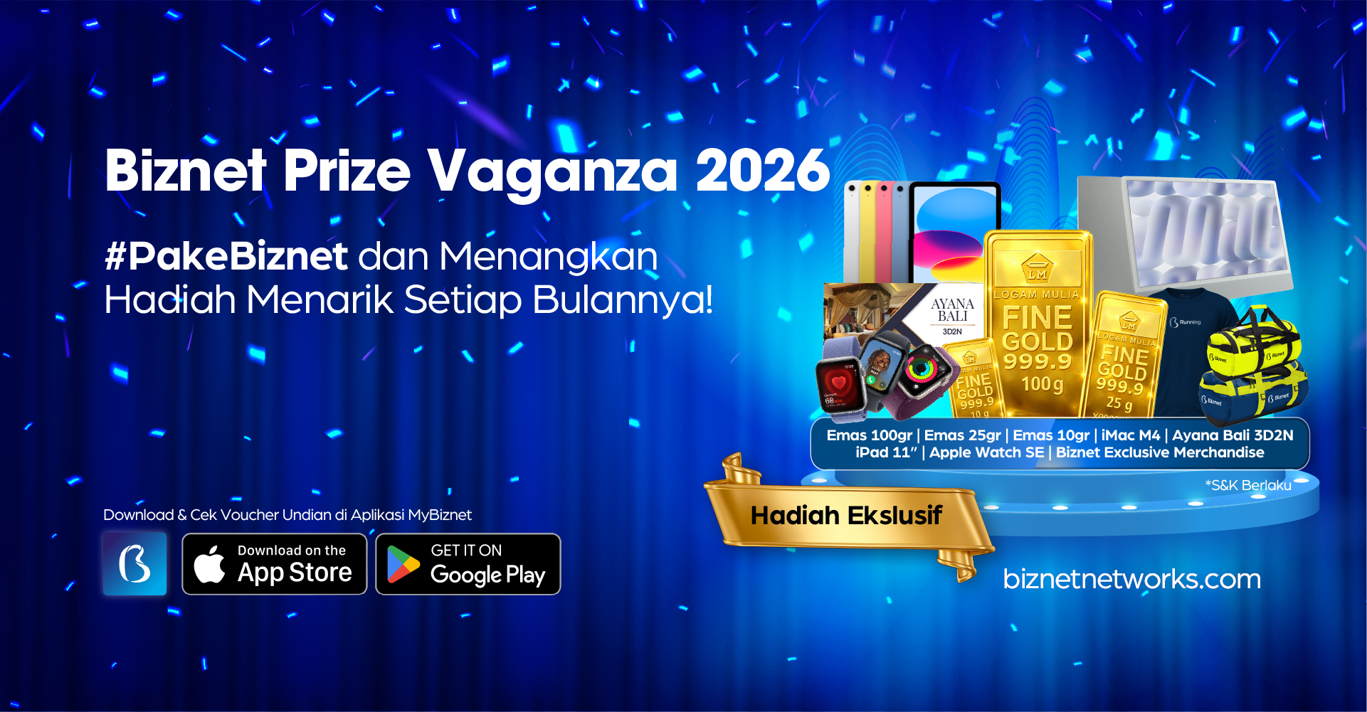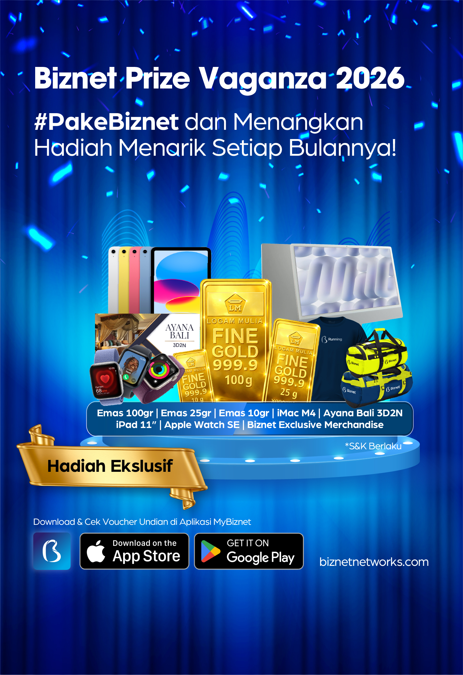- Penarikan undian akan dilakukan di Head Office Biznet Jakarta dan akan disiarkan secara live menggunakan platform Youtube.