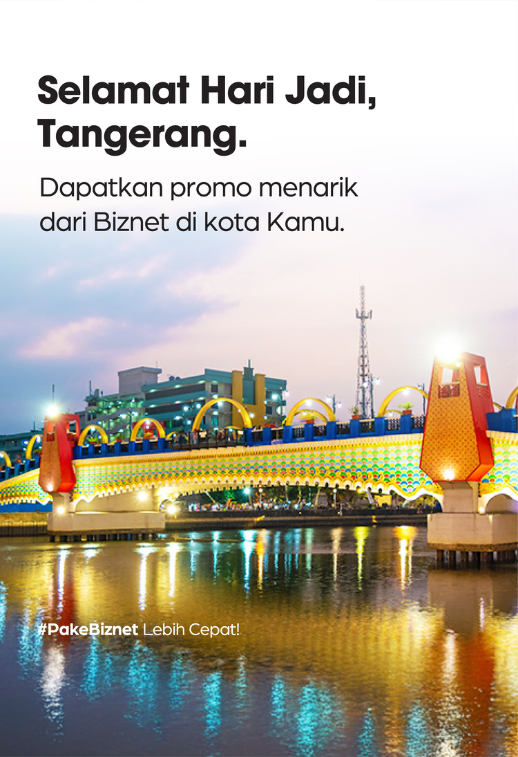 Biznet Home akan memberikan promo khusus untuk memeriahkan Hari Ulang Tahun Kota Tangerang yang ke – 33.